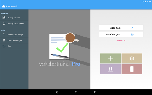 [Vokabeltrainer Pro] unterstützt dich beim Lernen und üben von Vokabeln - egal wo. Im Bus zur Schule/Uni, im Urlaub am Strand oder einfach zu Hause bequem auf der Couch.