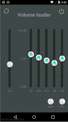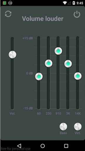 Enhance your music listening experience. Make it your Android sounds like never before. Volume Music Equalizer is a volume slider with live music stereo led VU meter and five band Equalizer with Bass Boost and Virtualizer effects. Improve sound quality on your Android device and get live readings of your current music volume level. Use with headphones for best results. Works with most Music players such as: * Android Music Player * Winamp * Google Music * MixZing and more Installation and usage: * Long press on home screen to add Volume Music Equalizer widget. * Put headphones * Turn on the music player and play your music * Press Volume Music Equalizer widget and adjust sound level and frequency.
