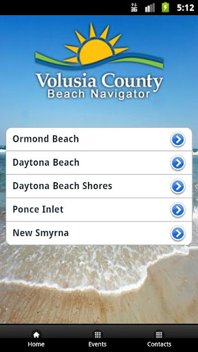 Location based information related to Volusia County Beaches and beach front facilities. This application will help you find the nearest open beach ramp, off beach parking, restrooms, concession stands, open lifeguard towers and more. It needs a GPS location and internet access to work. This application will interact with other navigation applications on your device to help you navigate to your destination. It also has beach condition information and links to the beach web cams.