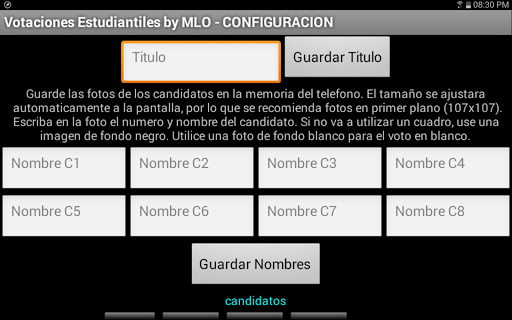 * Carga las fotografias de los candidatos. Si no vas a usar alguno, sube una imagen de fondo negra (107x107).
