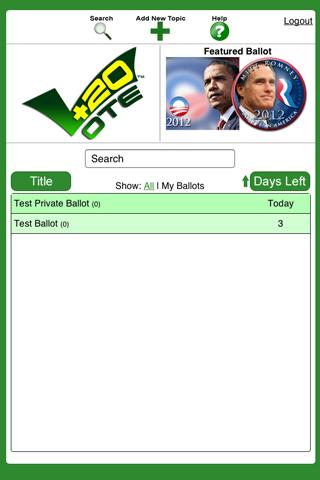 Vote for FREE on topics that matter to you from millions all over the world - one vote per ballot per person. - OR - Create your own ballot to get real-time feedback on any topic.
