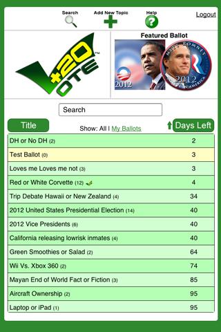 Instructions: Choose a ballot from the list or search by keyword and then click on the desired ballot. Each ballot screen displays voting checkboxes, number of votes, days remaining, what others have said about the topic and a brief description if it was provided.