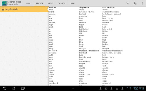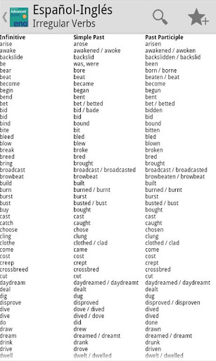 * Irregular verb tables, both Spanish and English