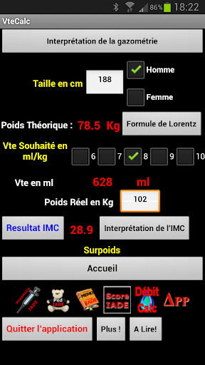 Permet de calculer rapidement le poids idéal du patient en fonction de sa taille et de son sexe grâce à la formule de Lorenz.