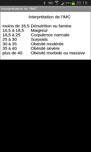 V 1.1.4 Interpretation directe de l'IMC après le calcul