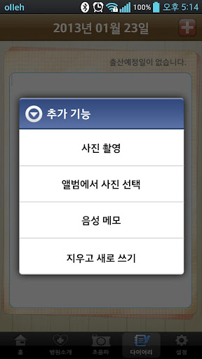 초음파 영상이 표시되는 산모 다이어리를 작성할 수 있습니다.