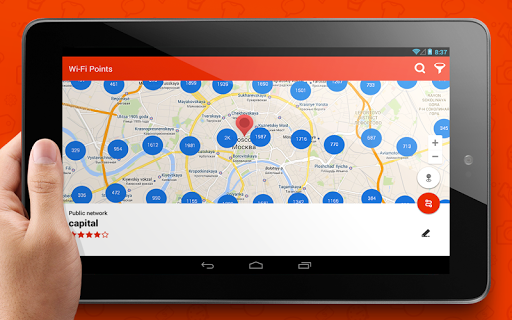Handy free WiFi map allows to find the nearest available wifi networks, create walk or auto-route to the hotspot.