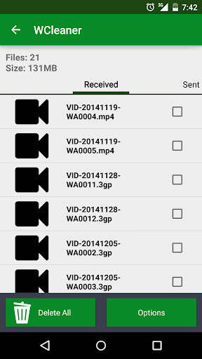 WCleaner is a little tool for cleaning WhatsApp files that are stored in your phone.