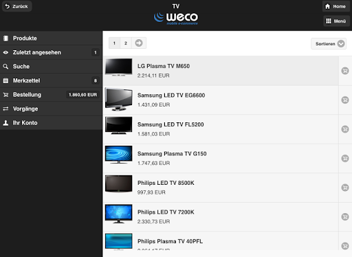verschiedenen Möglichkeiten von WECO E-Commerce Mobile auf. Es werden keine Buchungen in Produktivsystemen vorgenommen, deshalb können alle Aktivitäten uneingeschränkt ausgeführt werden. Die verwendeten Produkte und Preise sind frei erfunden, es besteht keine Gewährleistung hinsichtlich der Richtigkeit der Daten.