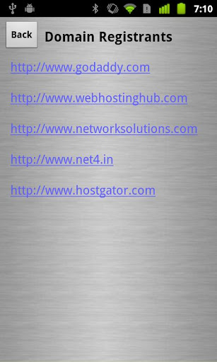 Book Now Screen shows number of well-Known “Domain Registrants” web links which open in Web Browser and user continues to book the Domain of his choice.
