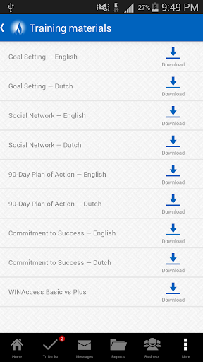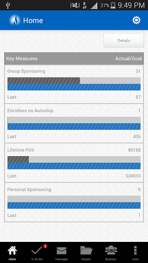 The app combines the easy-to-use experience of consumer apps with a wide range set of features that allows you to contact every member of your team, send and receive messages, access training, broadcast messages to your entire downline, recruit new Associates and monitor new business activity and rank advancements directly from their Android Mobiles. Innovative features that enable a member to monitor their entire downline, receive business reports, access multimedia content wherever they are, and see who they need to contact to make the most of their business.
