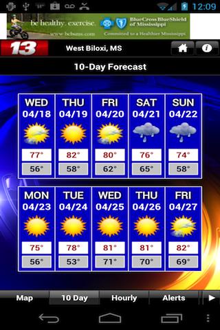 The local forecast, radar, and current weather conditions for Mississippi are all within this app, including Biloxi, Gulfport, Pascagoula, Ocean Springs, Bay St. Louis, Waveland, Picayune, Wiggins, Lucedale and the rest of the WLOX viewing area.