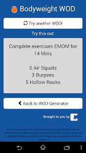 WOD Generator with 4401 workouts (more added all the time). Simply choose a category to generate a random workout of the day.