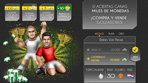 - Haz tus mejores predicciones en las 7 Zonas del campo, pierna derecha, pierna izquierda o mejor de cabeza, tu ya sabes la especialidad de tus delanteros!!
