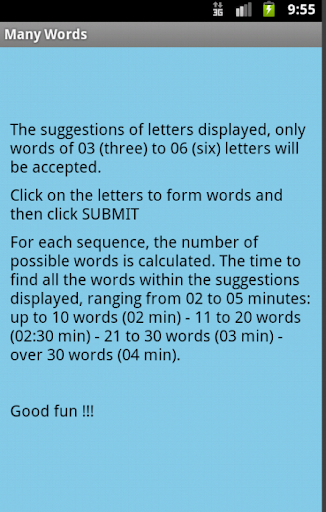 Game and intuitive knowledge of the English Language: Forming words. Basically, the game gives you six options of letters randomly, and within those options, you form words of up to six (06) letters and at least three (03) letters. It is an excellent pastime. So test your knowledge Forming words.