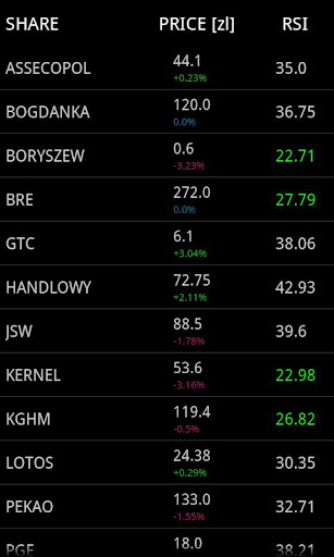 This is lite version. The RSI of some shares is not available in the lite version of Warsaw Stock Exchange Analyzer. Additionally, application is not free of ads.