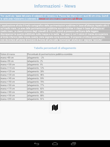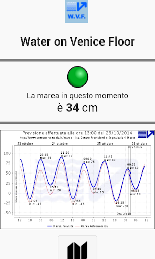 L'acqua alta a Venezia non fa più paura. Grazie alla mappa di WVF siamo in grado di individuare le pavimentazioni bagnate dall'alta marea a Venezia. In ROSSO coloriamo i tratti di Calli e Campi bagnati in caso di acqua alta, il tutto in tempo reale. L'applicazione è lo strumento ideale per non rimanere bloccati di fronte ad una calle sommersa dall'acqua ed arrivare a destinazione senza bagnarsi. WVF è la mappa aggiornata in tempo reale delle "strade" veneziane bagnate al variare della marea. WVF è realizzata in collaborazione con l'Istituzione Centro Previsioni e Segnalazioni Maree del comune Venezia, dalla quale leggiamo in tempo reale il valore di marea.
