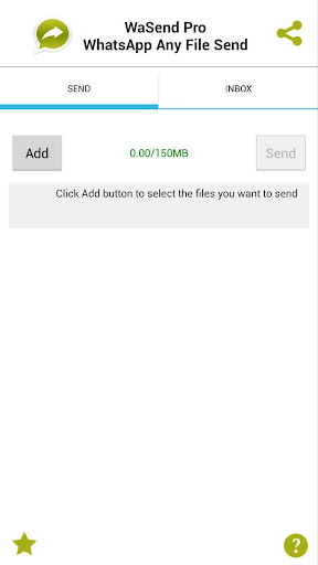 1. Opens WaSend and select as many files as you want to send, in any format or extension, up to 150MB.