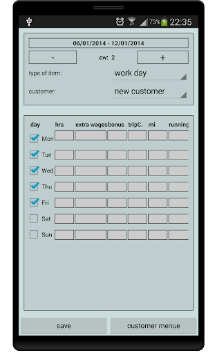 The handling of this app is quite easily and quickly. Generally 3 clicks should be enough for a new issue whether it’s for a whole week or just for one day.