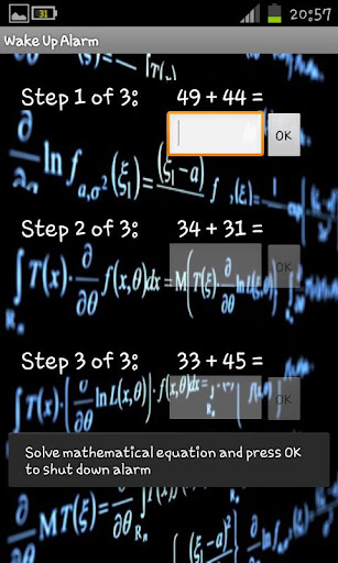 • 2 Math Problem - Solve three mathematical equations to shut down alarm.
