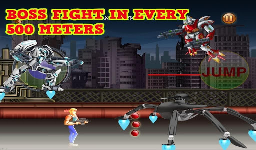 One of the main feature of this game is when the Commando reaches every 1000 meter there is a Difficult Boss Fight,you need to Destroy the Boss to move from the