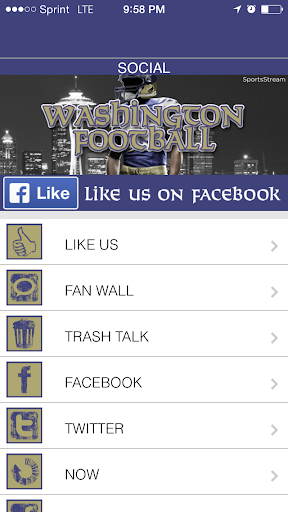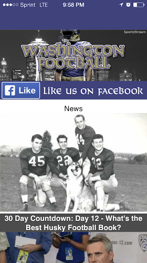 Washington Huskies Football fans! If you want to latest and greatest way to keep up with your favorite team, then check out the Washington Football STREAM Mobile App!! Get news, scores, standings, videos and more regarding your beloved Washington Huskies.
