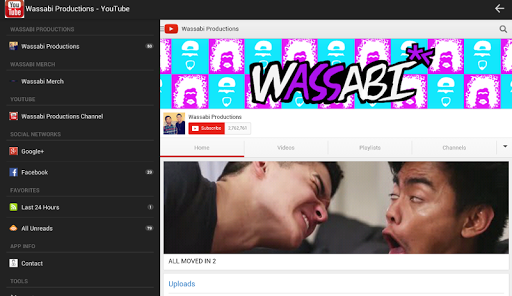 Wassabi Productions Access is a custom made FREE fan app that provides all their followers with full access to every connection possible. This app receives direct video feeds and links to Youtube channels. Additionally users can access Wassabi's Facebook, Instagram, Tumbler and all other social networks populated by their many antics.