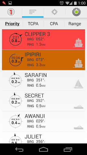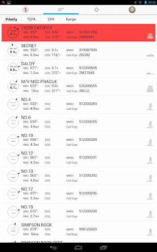 - Displays your AIS targets in a list view enabling sorts by priority, CPA, TCPA and range.