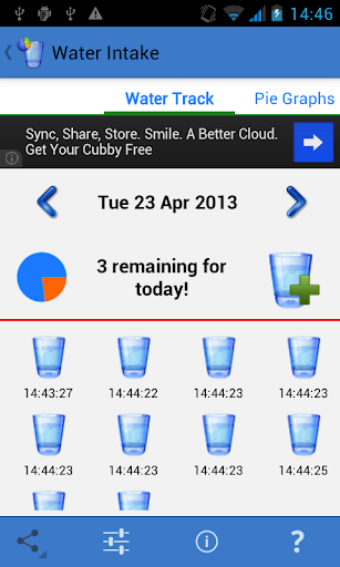 Are you drinking enough water? Why not track your water intake and reveal days when you should be drinking more.