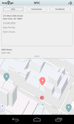 A must-have for tourists, families and locals too, Way2Go NYC quickly directs you to the nearest restrooms in Manhattan. Developed by New Yorkers for everyone, Way2Go NYC uses local knowledge to provide the best, detailed information to solve this pressing need. We know restroom scarcity is a problem for New York City, and so we’ve set out to provide the best tool to help you find one in the City.