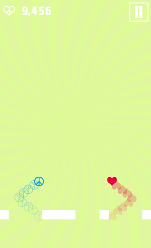 - Release your finger to go up and score points as indicated by the PEACELOVE symbol.
