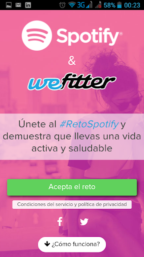 1- Regístrate y conectate con tu app o dispositivo de fitness favorito. Runtastic, Runkeeper, Endomondo, Strava, Moves, Garmin, ,Fitbit, Jawbone UP, Suunto, Nike plus, etc