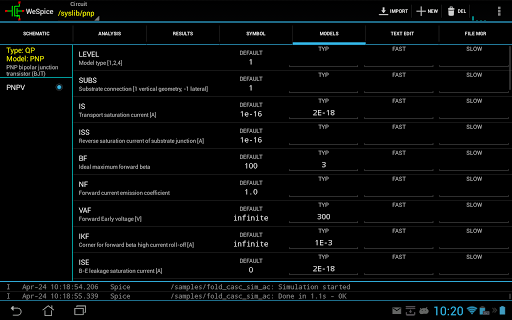 + At all steps you can import data and proceed (including models and spice input: netlists, commands, etc.).