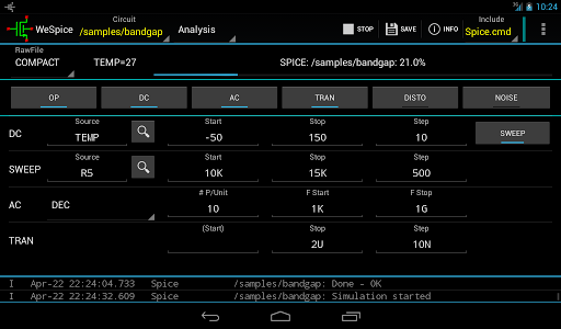 + The simulator is NGSPICE, based on Berkeley SPICE 3F5. Compared to SPICE 3F5, NGSPICE has many additions, is more stable and runs faster.