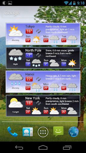 Widget with forecasts from over 8.7 million places worldwide delivered by the norwegian meteorological institute (yr.no), updated several times each day. Search or show the forecast for your current location.