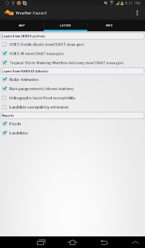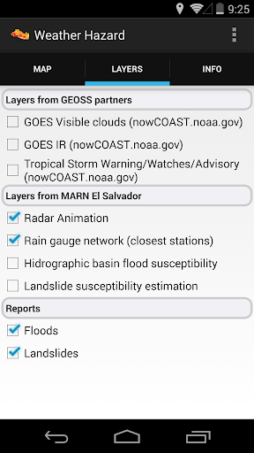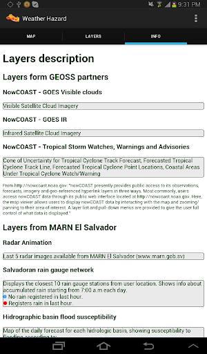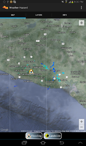 This Application consumes GIS services from NOAA/nowCOAST and MARN El Salvador to display real time data about weather conditions, specially rain as it influences hazard susceptibility to landslides and floodings.