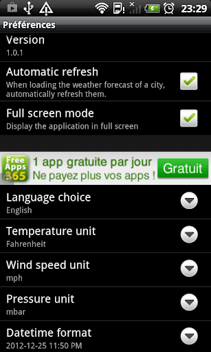 Weather Online for Android provides current conditions and quality weather forecasts on 9 days or 14 days (according to the chosen provider) for any location in the world.