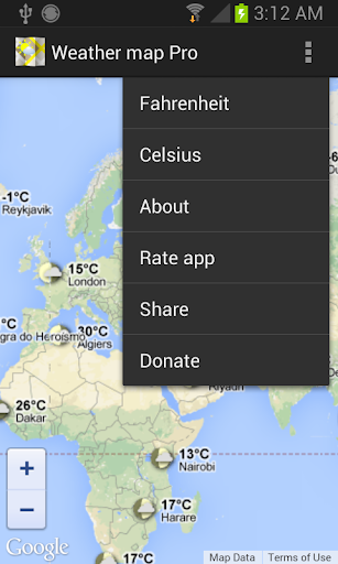 The Weather Map shows you the weather around your location. If you want, you can also view it all around you on a big scale, or even for every place in the world. Using Farenheit or Celsius degrees, forecasts can be viewed by the hour.