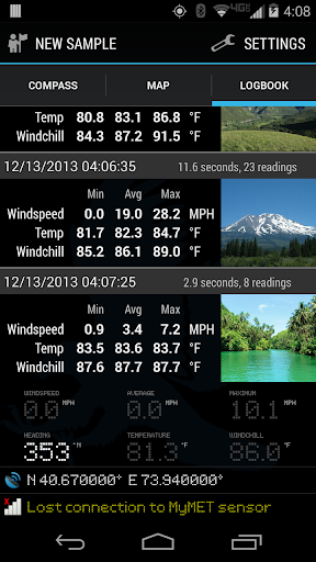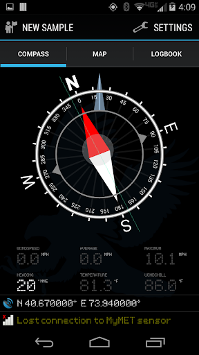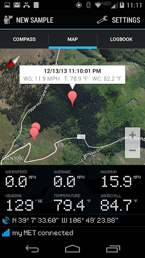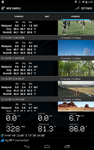 The myMET wind meter measures wind speed, air temperature and wind chill. Real time data is transmitted using Bluetooth 4.0 LE technology. The data is captured by this app, integrated with location and altitude to give the user the environmental conditions at their location. The data can be logged by the mobile device, connected to an image of the site, and transmitted to another remote location using text, social networking or email.