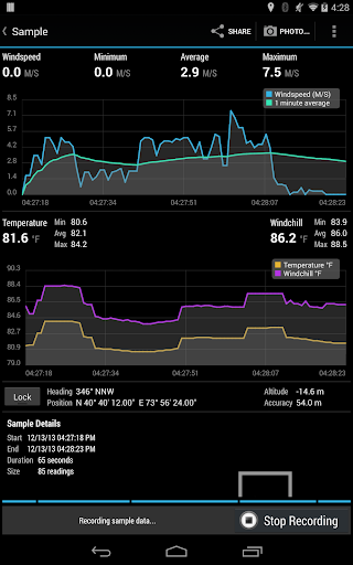 WeatherHawk's myMET monitor application connects your Android device with a myMET hand held wind meter.