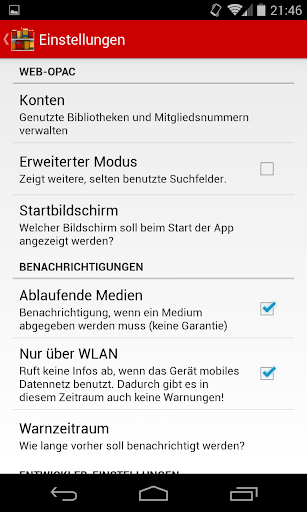 - Anzeige von Informationen der Bibliothek (z.B. Öffnungszeiten)