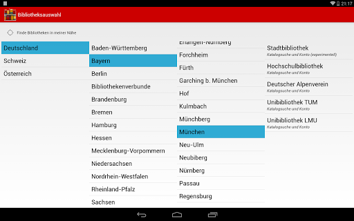 Diese kostenlose Android-App ermöglicht den bequemen Zugriff von unterwegs auf die Kataloge und Mitgliedskonten von über fünfhundert öffentlichen Bibliotheken im deutschsprachigen Raum.