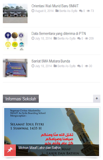 Menampilkan informasi tentang SMAIT As-Syifa Boardingschool di smartphone berbasis Android