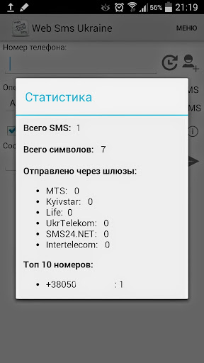 - Sent messages statistics, into outgoing SMS messages, or web-sms database.