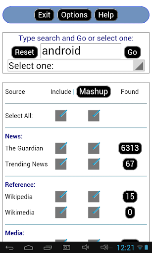 * Optionally, 'Mashup' chosen sources and view their results together, a page at a time.