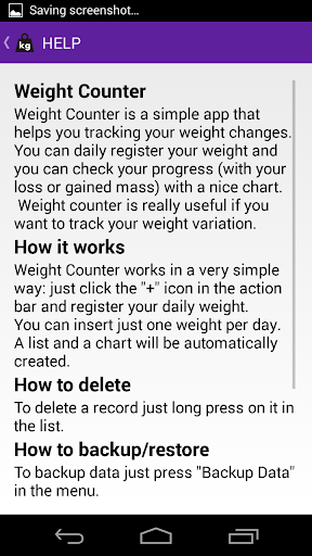 You can daily register your weight and you can check your progress (with your loss or gained mass) with a nice chart.
