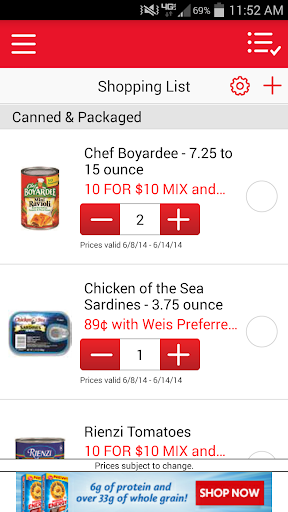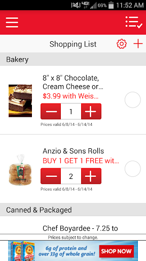 - Synchronize between your shopping list on your device and your shopping list on WeisMarkets.com