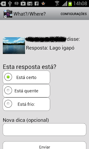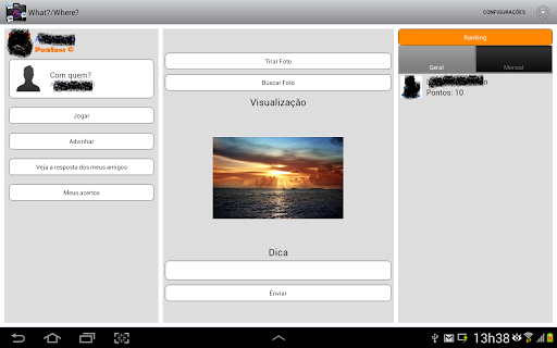 Envie uma foto de um lugar ou um objeto para que seu amigo identifique quem é a pessoa qual é o objeto ou o lugar por onde você passou ou um lugar que você está no momento, você deve enviar uma dica para facilitar a resposta. Se você enviar uma foto para um amigo e ele responder corretamente na primeira vez, apenas ele ganha pontos, mas se ele acertar com duas ou mais respostas, a cada erro dele você também acumula pontos. Mas não dificulte muito, pois muitos erros do seu amigo e você deixa de ganhar pontos (Veja a forma de pontuação).