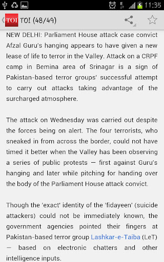 Your favourite Indian newspapers now at your finger tips! Read through The Hindu and Times of India articles on the go. Set sync interval according to your interest and keep up to date with the headlines.
