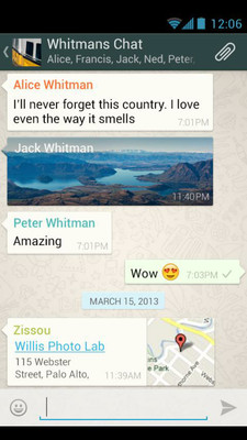 - 无国际收费:正如您无需对发送国际电子邮件支付费用一样,您也无需就发送WhatsApp信息支付任何国际费用。只要您的朋友也安装了WhatsApp Messenger,您就可以与全球各地的朋友畅聊天下,并可避免国际手机短信费用带来的烦恼。